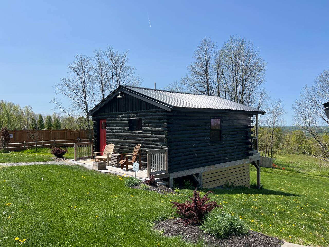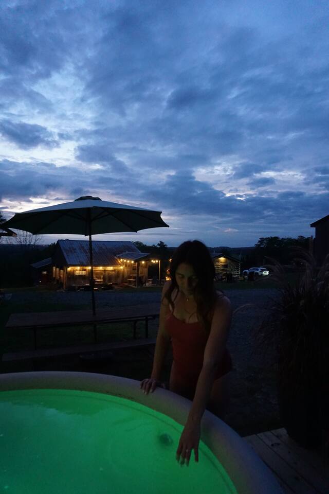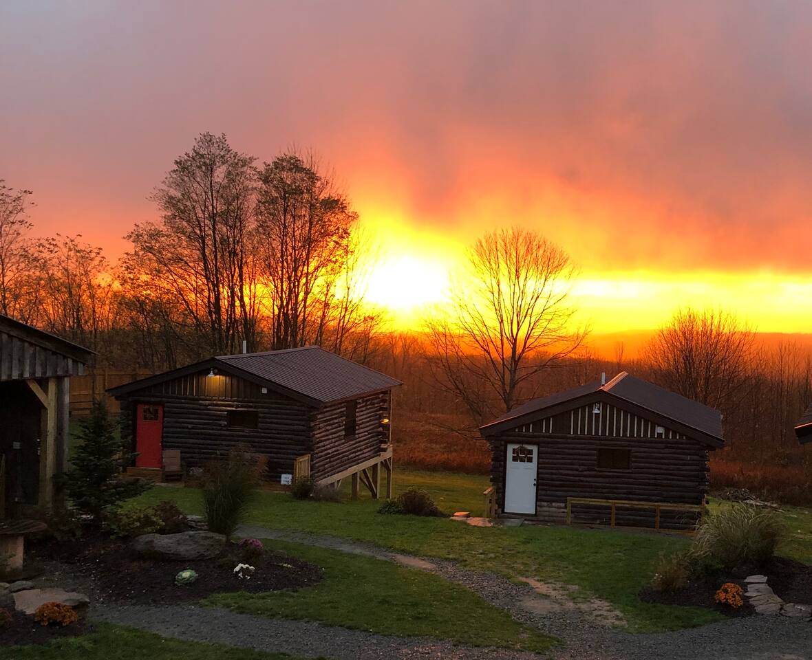 ***Want to travel with friends? Jack cabin is 1 of 4 cabins that make up Camp Bluestone! See here for details: https://www.airbnb.com/rooms/39043990 400 sq. ft. cozy, pet-friendly cabin with stunning views, a hot tub, a fire pit, pavilion, and easy access to skiing and hiking. 🏷 Main Floor Studio Features ∙ Two-burner electric cooktop ∙ Mini fridge with small freezer ∙ Microwave ∙ Coffee pot with filters ∙ Toaster ∙ Frying pan and pot ∙ Silverware, cooking utensils, measuring cups/spoons, can opener, and corkscrew ∙ Dishes, glasses, and coffee mugs ∙ Basic spices, olive oil, salt & pepper, sugar, and cooking spray ∙ Dish soap provided Beds ∙ King-size bed ∙ Queen murphy bed ∙ Premium mattresses and comforters ∙ Loveseat ∙ Large windows with blackout blinds Bathroom ∙ Single sink with large vanity ∙ Shower ∙ Hairdryer ∙ Shampoo and body wash ∙ Makeup washcloth Other Amenities ∙ Hanging rack w/ hangers ∙ Bedside tables ∙ Access to private balcony 🏷 Outdoor Space The Pavilion, hot tub, firepit and grounds are a shared space. We invite you to use them at your leisure and hope you’ll enjoy sharing the outdoor spaces with others when 1 of our 3 other cabins are booked! ∙ NEW! Cozy shared hot tub ∙ Generous pavilion with outdoor dining, kitchenette and fridge ∙ Oversized outdoor wood fire pit ∙ Yard games - cornhole, ladder golf & other assorted games ∙ Plenty of parking! 🚘 Nearby Local Golf Courses (various distances): Enjoy scenic and challenging courses in the area, perfect for golf enthusiasts. ∙ Rails to Trails network of trails (1-20min): Several converted former railroad corridors that provide scenic multi-use paths for walking, biking, and outdoor recreation (snow mobiles, ATVs), connecting communities and showcasing natural landscapes. ∙ Missi's Place (8 minutes): A cozy American diner offering hearty breakfast and lunch options, such as omelets, burgers, and BBQ chicken. It features a relaxed, friendly atmosphere ∙ Arlo's Country Store and Tavern (10 minutes): A casual spot known for its live music every Friday, Saturday, and Sunday, along with great drinks and a welcoming vibe. ∙ Florence Shelly Preserve (10 mins): A natural area with trails and wetlands, ideal for birdwatching and hiking. ∙ The Pump House 104 (15 mins): A rustic cafe serving artisan coffee and light bites. ∙ Chet's Place (16 min): A welcoming lodge-style destination featuring comfortable accommodations, delicious food, and a relaxed atmosphere perfect for outdoor enthusiasts and travelers alike. ∙ The Beacon (16 min): A vibrant local bar with a friendly vibe, great drinks, a shuffleboard table, and a pool table. ∙ Cables General Store (18 min): A charming, family-owned shop serving breakfast and lunch, with takeout options for dinner, along with groceries, snacks, and essentials. ∙ Elk Mountain Ski Resort (25 mins): A top-notch ski destination with slopes for all levels. ∙ Salt Springs State Park (30 mins): Features waterfalls, hiking trails, and picnic spots. ∙ Three Hammers Winery (35 mins): A winery offering tastings and picturesque vineyard views. ∙ The Starrucca Viaduct (40 mins): A historic railroad bridge and photography hotspot. ∙ Montrose Farmers Market (40 mins): A seasonal market with local produce and crafts. ∙ Lackawanna Coal Mine Tour (45 mins): Experience a real coal mine and learn about the region's history. ∙ Steamtown National Historic Site (50 mins): A railway museum showcasing historic trains. ∙ Roba Family Farms (50 mins): A family-friendly spot with seasonal activities and treats. ∙ Honesdale Roots & Rhythm Festival (50 mins): An annual music and arts event. ∙ Promised Land State Park (1 hr): A serene area for boating, hiking, and wildlife watching. ∙ Bethel Woods Center for the Arts (1 hr 15 mins): A venue for concerts and cultural events. ∙ Pocono Environmental Education Center (1 hr 20 mins): Offers programs on nature and ecology. ∙ Lake Wallenpaupack (1 hr 20 mins): Perfect for water activities and scenic views. ∙ Scranton Cultural Center (1 hr 30 mins): Hosts theater, concerts, and cultural events. ∙ Knoebels Amusement Resort (1 hr 40 mins): A classic amusement park with rides and attractions. ∙ Delaware Water Gap National Recreation Area (1 hr 50 mins): Outdoor adventures like hiking, canoeing, and stunning vistas.