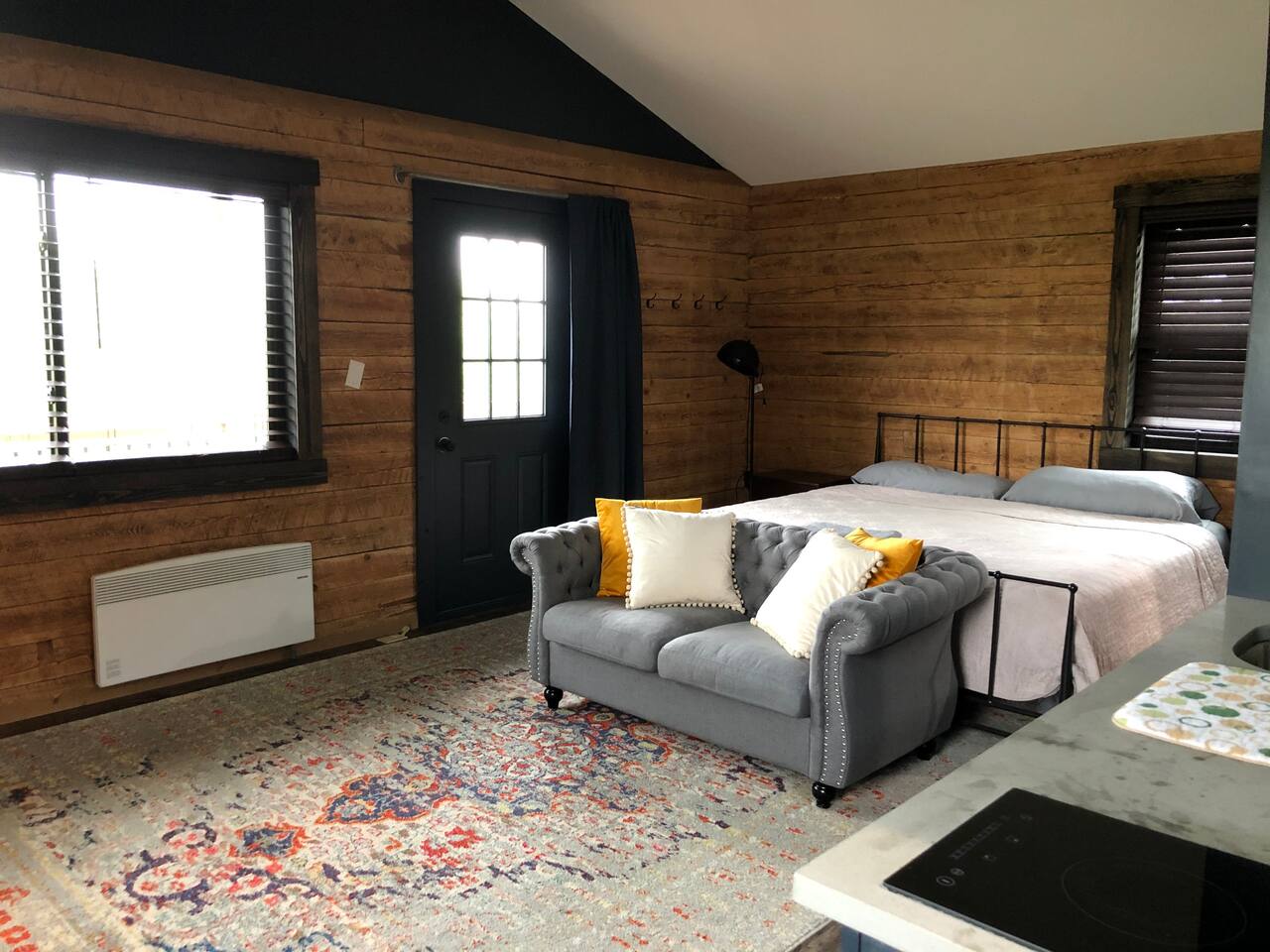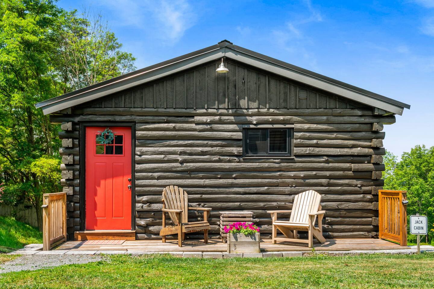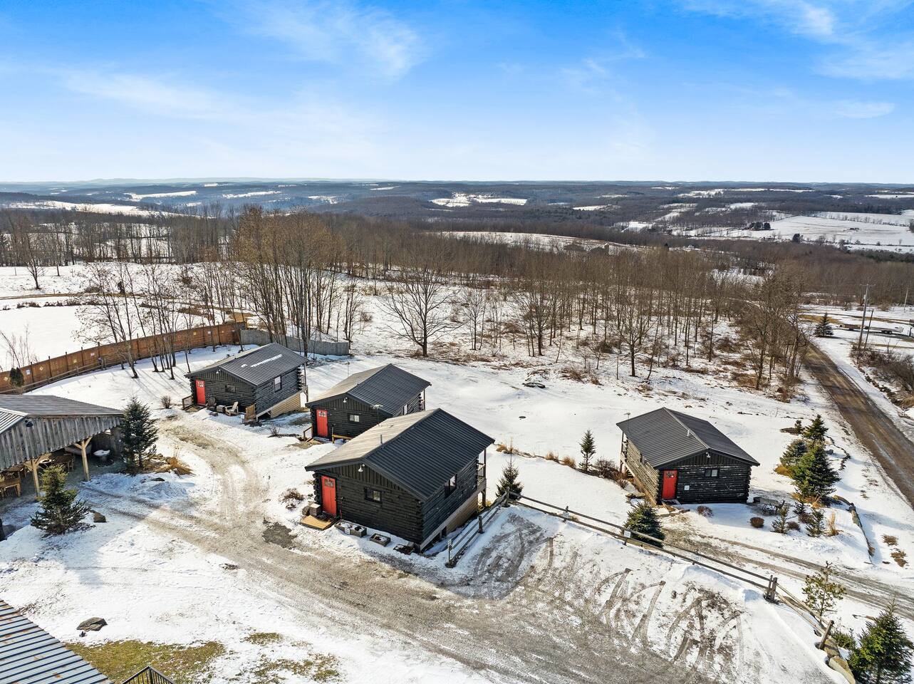 ***Want to travel with friends? Jack cabin is 1 of 4 cabins that make up Camp Bluestone! See here for details: https://www.airbnb.com/rooms/39043990 400 sq. ft. cozy, pet-friendly cabin with stunning views, a hot tub, a fire pit, pavilion, and easy access to skiing and hiking. 🏷 Main Floor Studio Features ∙ Two-burner electric cooktop ∙ Mini fridge with small freezer ∙ Microwave ∙ Coffee pot with filters ∙ Toaster ∙ Frying pan and pot ∙ Silverware, cooking utensils, measuring cups/spoons, can opener, and corkscrew ∙ Dishes, glasses, and coffee mugs ∙ Basic spices, olive oil, salt & pepper, sugar, and cooking spray ∙ Dish soap provided Beds ∙ King-size bed ∙ Queen murphy bed ∙ Premium mattresses and comforters ∙ Loveseat ∙ Large windows with blackout blinds Bathroom ∙ Single sink with large vanity ∙ Shower ∙ Hairdryer ∙ Shampoo and body wash ∙ Makeup washcloth Other Amenities ∙ Hanging rack w/ hangers ∙ Bedside tables ∙ Access to private balcony 🏷 Outdoor Space The Pavilion, hot tub, firepit and grounds are a shared space. We invite you to use them at your leisure and hope you’ll enjoy sharing the outdoor spaces with others when 1 of our 3 other cabins are booked! ∙ NEW! Cozy shared hot tub ∙ Generous pavilion with outdoor dining, kitchenette and fridge ∙ Oversized outdoor wood fire pit ∙ Yard games - cornhole, ladder golf & other assorted games ∙ Plenty of parking! 🚘 Nearby Local Golf Courses (various distances): Enjoy scenic and challenging courses in the area, perfect for golf enthusiasts. ∙ Rails to Trails network of trails (1-20min): Several converted former railroad corridors that provide scenic multi-use paths for walking, biking, and outdoor recreation (snow mobiles, ATVs), connecting communities and showcasing natural landscapes. ∙ Missi's Place (8 minutes): A cozy American diner offering hearty breakfast and lunch options, such as omelets, burgers, and BBQ chicken. It features a relaxed, friendly atmosphere ∙ Arlo's Country Store and Tavern (10 minutes): A casual spot known for its live music every Friday, Saturday, and Sunday, along with great drinks and a welcoming vibe. ∙ Florence Shelly Preserve (10 mins): A natural area with trails and wetlands, ideal for birdwatching and hiking. ∙ The Pump House 104 (15 mins): A rustic cafe serving artisan coffee and light bites. ∙ Chet's Place (16 min): A welcoming lodge-style destination featuring comfortable accommodations, delicious food, and a relaxed atmosphere perfect for outdoor enthusiasts and travelers alike. ∙ The Beacon (16 min): A vibrant local bar with a friendly vibe, great drinks, a shuffleboard table, and a pool table. ∙ Cables General Store (18 min): A charming, family-owned shop serving breakfast and lunch, with takeout options for dinner, along with groceries, snacks, and essentials. ∙ Elk Mountain Ski Resort (25 mins): A top-notch ski destination with slopes for all levels. ∙ Salt Springs State Park (30 mins): Features waterfalls, hiking trails, and picnic spots. ∙ Three Hammers Winery (35 mins): A winery offering tastings and picturesque vineyard views. ∙ The Starrucca Viaduct (40 mins): A historic railroad bridge and photography hotspot. ∙ Montrose Farmers Market (40 mins): A seasonal market with local produce and crafts. ∙ Lackawanna Coal Mine Tour (45 mins): Experience a real coal mine and learn about the region's history. ∙ Steamtown National Historic Site (50 mins): A railway museum showcasing historic trains. ∙ Roba Family Farms (50 mins): A family-friendly spot with seasonal activities and treats. ∙ Honesdale Roots & Rhythm Festival (50 mins): An annual music and arts event. ∙ Promised Land State Park (1 hr): A serene area for boating, hiking, and wildlife watching. ∙ Bethel Woods Center for the Arts (1 hr 15 mins): A venue for concerts and cultural events. ∙ Pocono Environmental Education Center (1 hr 20 mins): Offers programs on nature and ecology. ∙ Lake Wallenpaupack (1 hr 20 mins): Perfect for water activities and scenic views. ∙ Scranton Cultural Center (1 hr 30 mins): Hosts theater, concerts, and cultural events. ∙ Knoebels Amusement Resort (1 hr 40 mins): A classic amusement park with rides and attractions. ∙ Delaware Water Gap National Recreation Area (1 hr 50 mins): Outdoor adventures like hiking, canoeing, and stunning vistas.