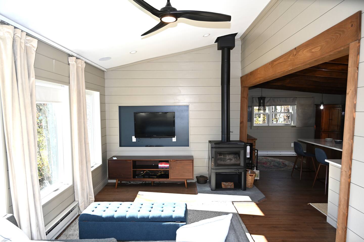 Nestled on a private lake in NEPA. The Bungalow offers a peaceful retreat with stunning views. 3 miles from Elk Mountain Ski Resort. Reconnect with nature, enjoy mountain hospitality, and experience the magic of the great outdoors. Light the fire, grab a drink and let the relaxation begin. Whether you’re seeking adventure or relaxation, this Mid-Century Modern space is perfect for couples or single travelers. Skiing at Elk Mountain Ice Fishing Swimming Kayaking Fishing Hiking Biking