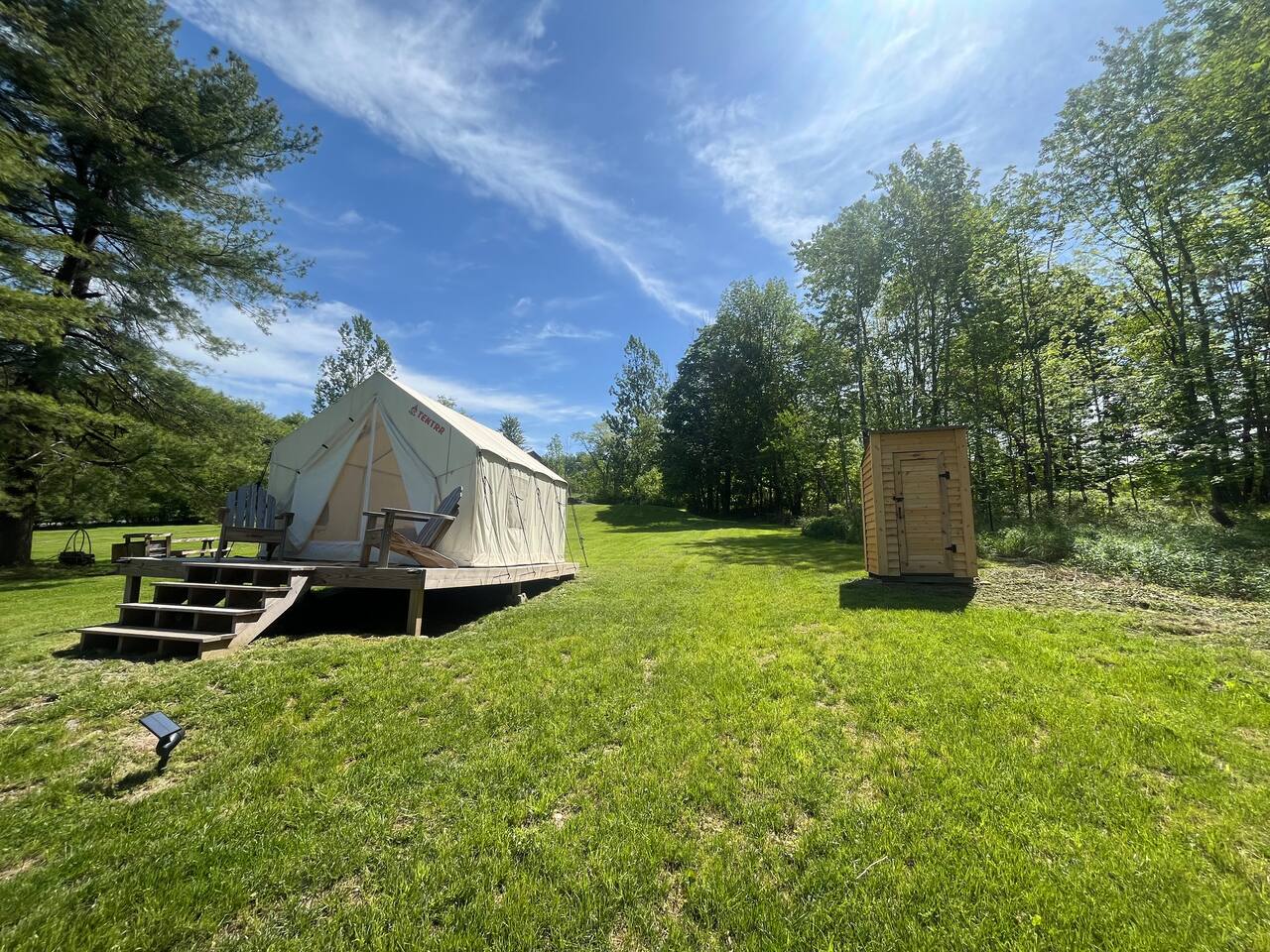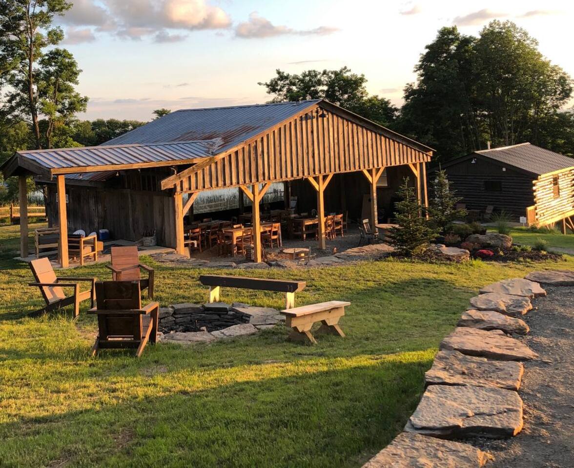 ***Want to travel with friends? We have an additional 4 onsite cabins and a lodge that make up Camp Bluestone! See here for details: https://www.airbnb.com/rooms/39043990 Glamping for 2 nestled in nature—private, peaceful, and made for recharging. Bed ∙ (1) queen size bed ∙ Premium mattresses, comforters, bedding Bathroom ∙ Outdoor outhouse Other Shared Amenities ∙ Generous pavilion with outdoor dining, kitchenette and fridge ∙ Cozy shared/communal hot tub ∙ Washrooms w/running water & flushing toilet ∙Oversized outdoor wood fire pit ∙ Yard games - cornhole, ladder golf & other assorted games ∙ Easy pull into site parking! The Pavilion and grounds are a shared space. We invite you to use them at your leisure and hope you’ll enjoy sharing the outdoor spaces with others Nearby ∙ Rails to Trails network of trails (1-20min): Several converted former railroad corridors that provide scenic multi-use paths for walking, biking, and outdoor recreation (snow mobiles, ATVs), connecting communities and showcasing natural landscapes. ∙ Missi's Place (8 minutes): A cozy American diner offering hearty breakfast and lunch options, such as omelets, burgers, and BBQ chicken. It features a relaxed, friendly atmosphere ∙ Arlo's Country Store and Tavern (10 minutes): A small eatery and tavern known for its casual vibe and classic American comfort food ∙ Florence Shelly Preserve (10 mins): A natural area with trails and wetlands, ideal for birdwatching and hiking. ∙ The Pump House 104 (15 mins): A rustic cafe serving artisan coffee and light bites. ∙ Chet's Place (16 min): A welcoming lodge-style destination featuring comfortable accommodations, delicious food, and a relaxed atmosphere perfect for outdoor enthusiasts and travelers alike. ∙ The Beacon (16 min): A vibrant local bar and live music venue known for its friendly vibe, great drinks, and eclectic entertainment offerings. ∙ Cables General Store (18 min): A charming, family-owned shop offering a mix of groceries, snacks, and essentials, along with a cozy, nostalgic atmosphere. ∙ Elk Mountain Ski Resort (25 mins): A top-notch ski destination with slopes for all levels. ∙ Arlo's Tavern (25 mins): A casual spot for live music and drinks. ∙ Salt Springs State Park (30 mins): Features waterfalls, hiking trails, and picnic spots. ∙ Three Hammers Winery (35 mins): A winery offering tastings and picturesque vineyard views. ∙ The Starrucca Viaduct (40 mins): A historic railroad bridge and photography hotspot. ∙ Montrose Farmers Market (40 mins): A seasonal market with local produce and crafts. ∙ Lackawanna Coal Mine Tour (45 mins): Experience a real coal mine and learn about the region's history. ∙ Steamtown National Historic Site (50 mins): A railway museum showcasing historic trains. ∙ Roba Family Farms (50 mins): A family-friendly spot with seasonal activities and treats. ∙ Honesdale Roots & Rhythm Festival (50 mins): An annual music and arts event. ∙ Promised Land State Park (1 hr): A serene area for boating, hiking, and wildlife watching. ∙ Bethel Woods Center for the Arts (1 hr 15 mins): A venue for concerts and cultural events. ∙ Pocono Environmental Education Center (1 hr 20 mins): Offers programs on nature and ecology. ∙ Lake Wallenpaupack (1 hr 20 mins): Perfect for water activities and scenic views. ∙ Scranton Cultural Center (1 hr 30 mins): Hosts theater, concerts, and cultural events. ∙ Knoebels Amusement Resort (1 hr 40 mins): A classic amusement park with rides and attractions. ∙ Delaware Water Gap National Recreation Area (1 hr 50 mins): Outdoor adventures like hiking, canoeing, and stunning vistas.